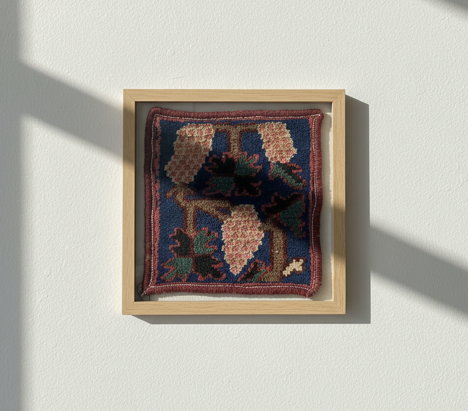 قاب فرش ۳۵*۳۵ سانتی متر -بافت چهارمحال و  بختیاری - قدمت :‌۶۰ ساله ‌‌‌.    * جنس قاب :‌چوب روسی اصل