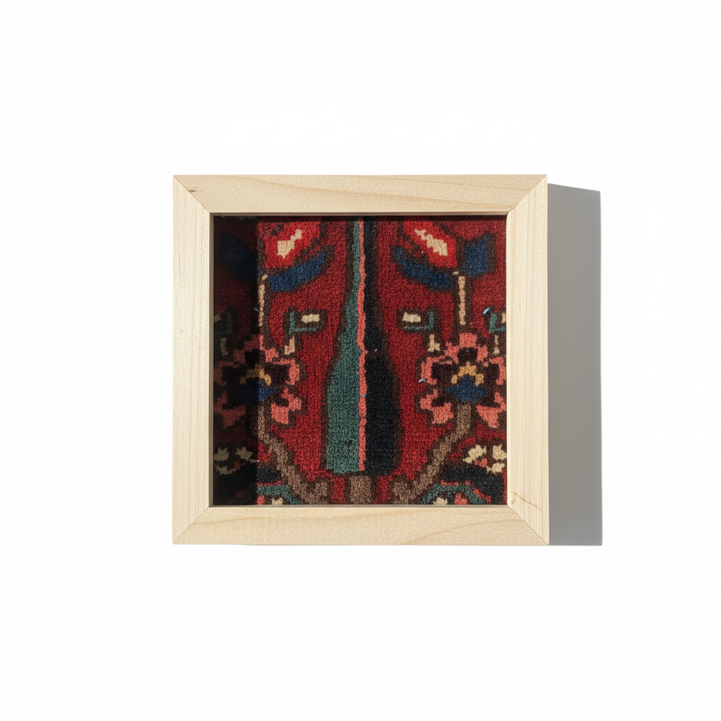 قاب فرش ۳۵*۳۵ سانتی متر -بافت چهارمحال و  بختیاری - قدمت :‌۶۰ ساله - * جنس قاب :‌چوب روسی اصل