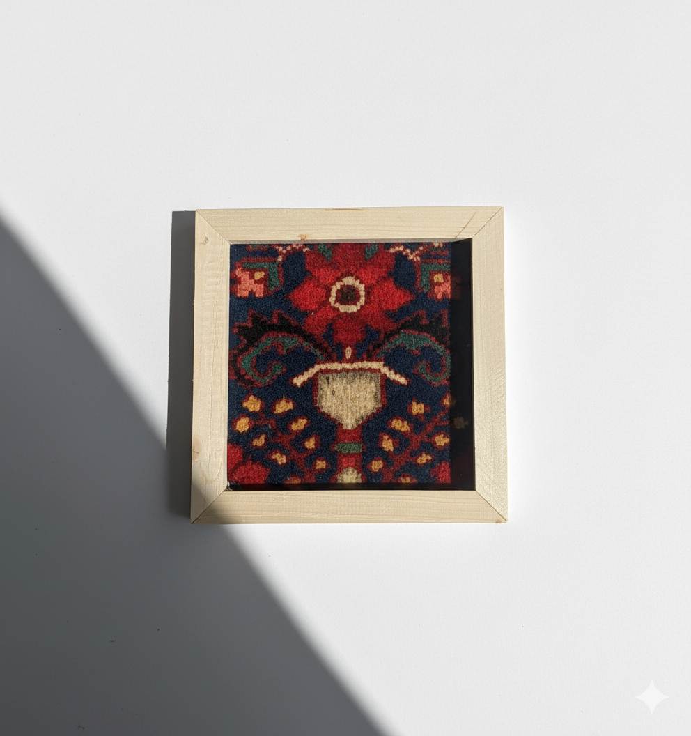 قاب فرش ۳۵*۳۵ سانتی متر -بافت چهارمحال و  بختیاری - قدمت :‌۶۰ ساله  * جنس قاب :‌چوب روسی اصل