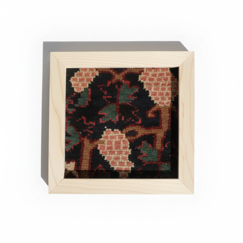 قاب فرش ۳۵*۳۵ سانتی متر -بافت چهارمحال و  بختیاری - قدمت :‌۶۰ ساله  * جنس قاب :‌چوب روسی اصل