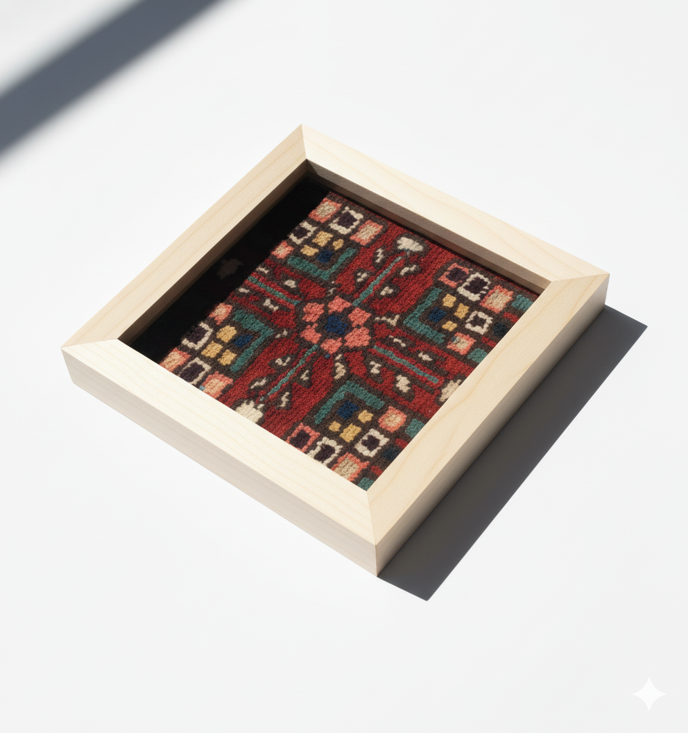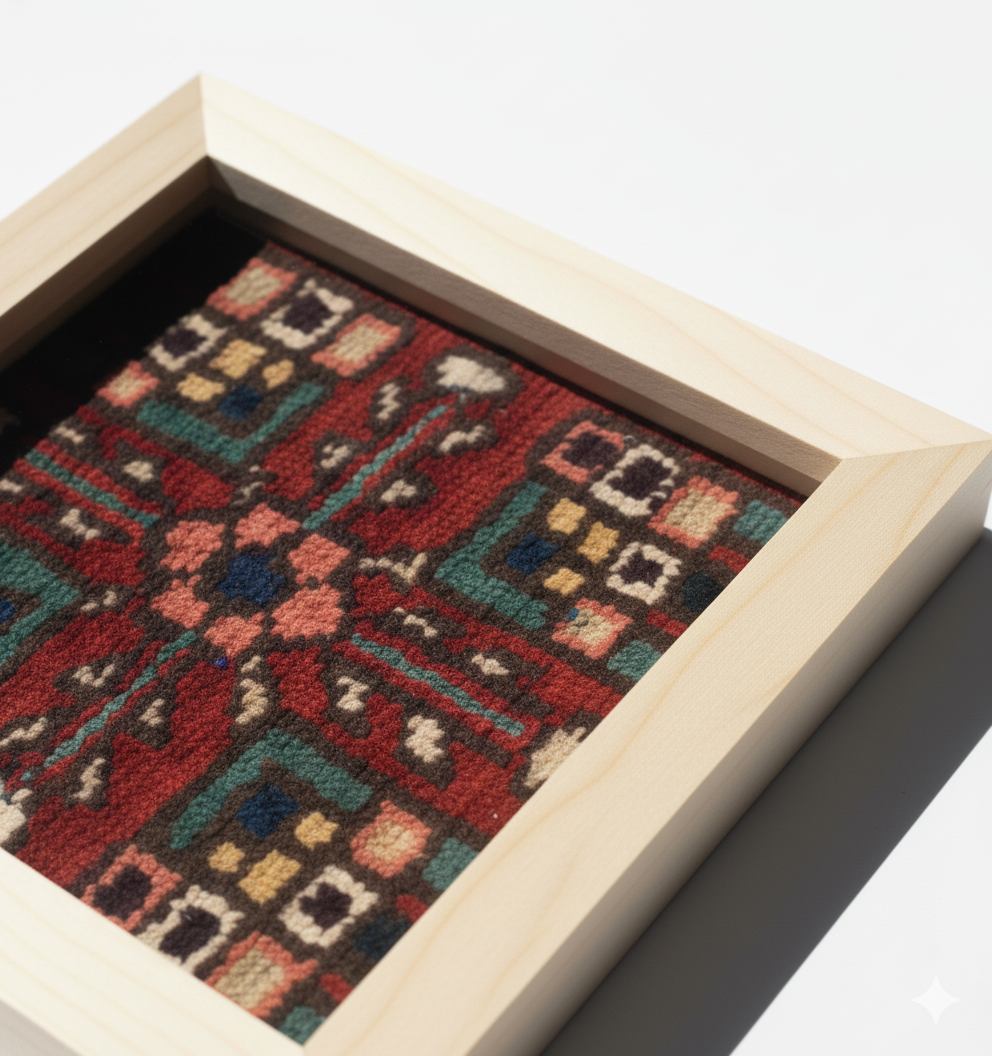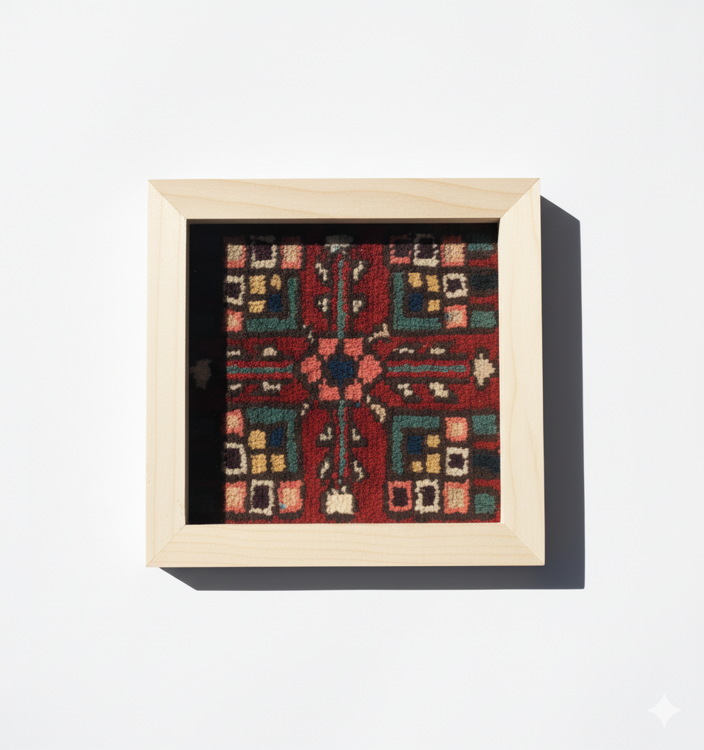 قاب فرش ۳۵*۳۵ سانتی متر -بافت چهارمحال و بختیاری - قدمت :۶۰ ساله * جنس قاب :چوب روسی اصل. ـ این تکههای ارزشمند، حاصل هنری است که فرسودگی را به زیبایی و قدمت را به ارزش افزوده تبدیل میکند. هر قطعه، شناسنامهای از هنر و صبر ایرانی و سرمایهای ماندگار است.